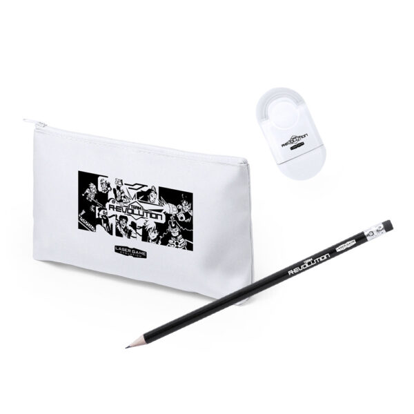 Pack Trousse + crayon + gomme taille crayon